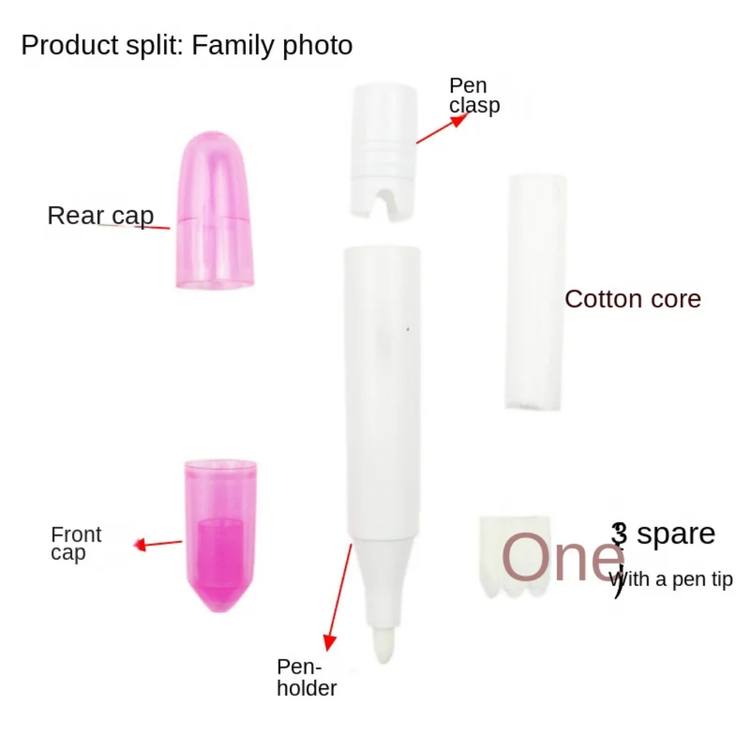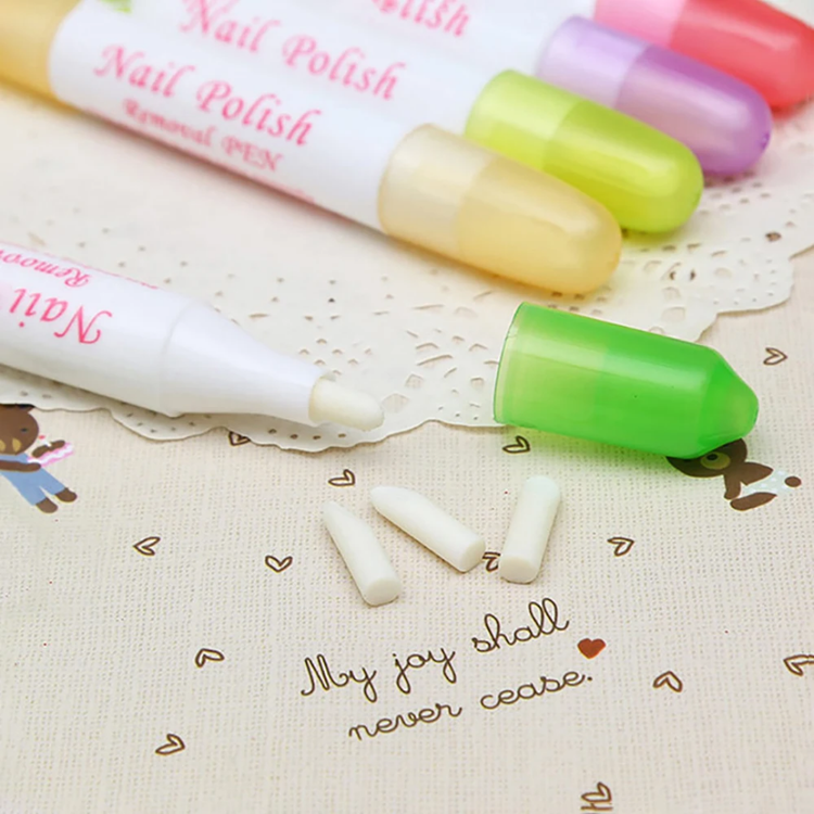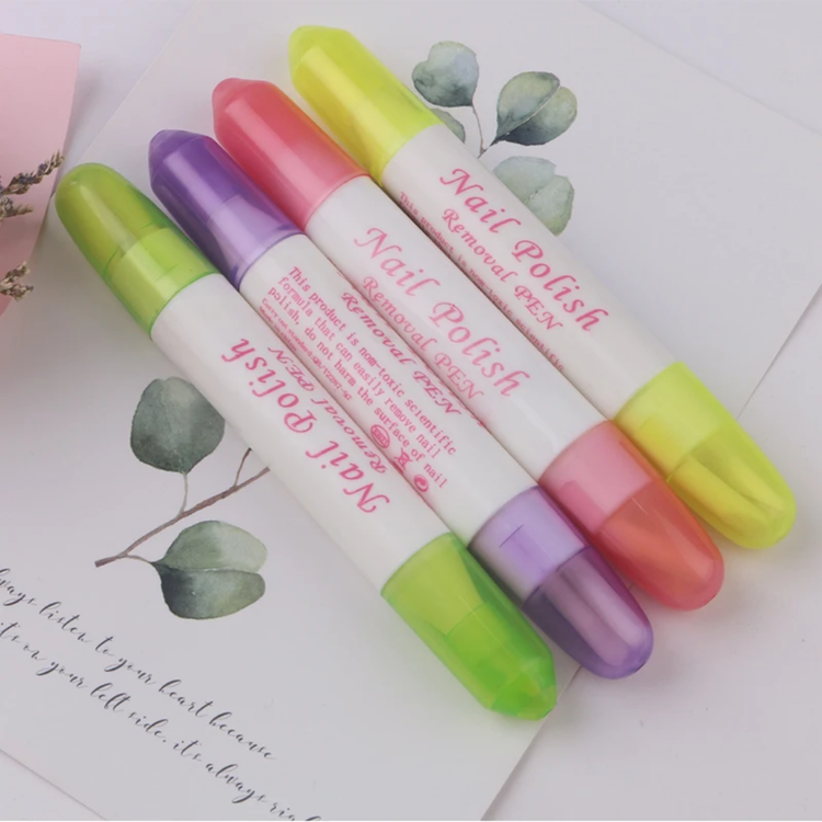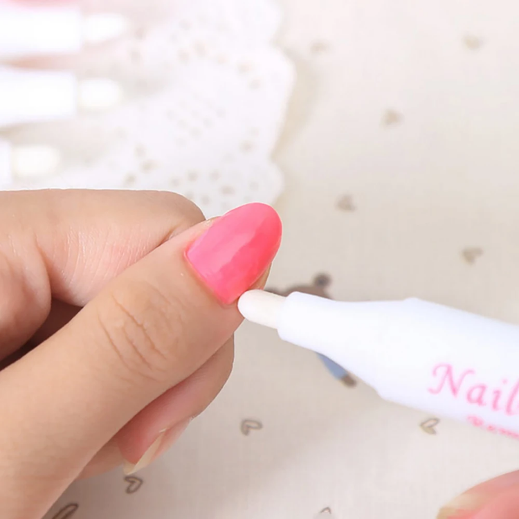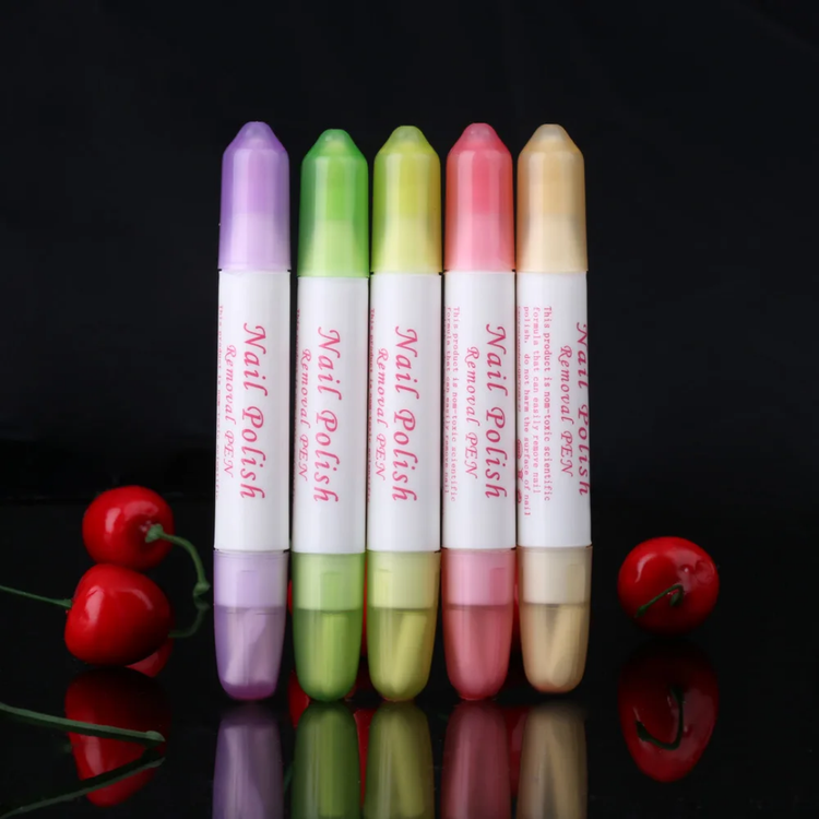 نوک قلم را بهآرامی روی قسمتهای اضافی لاک یا ژل بکشید تا کاملاً تمیز شود. در صورت نیاز میتوان نوک قلم را تعویض یا مجدداً به استون آغشته کرد.