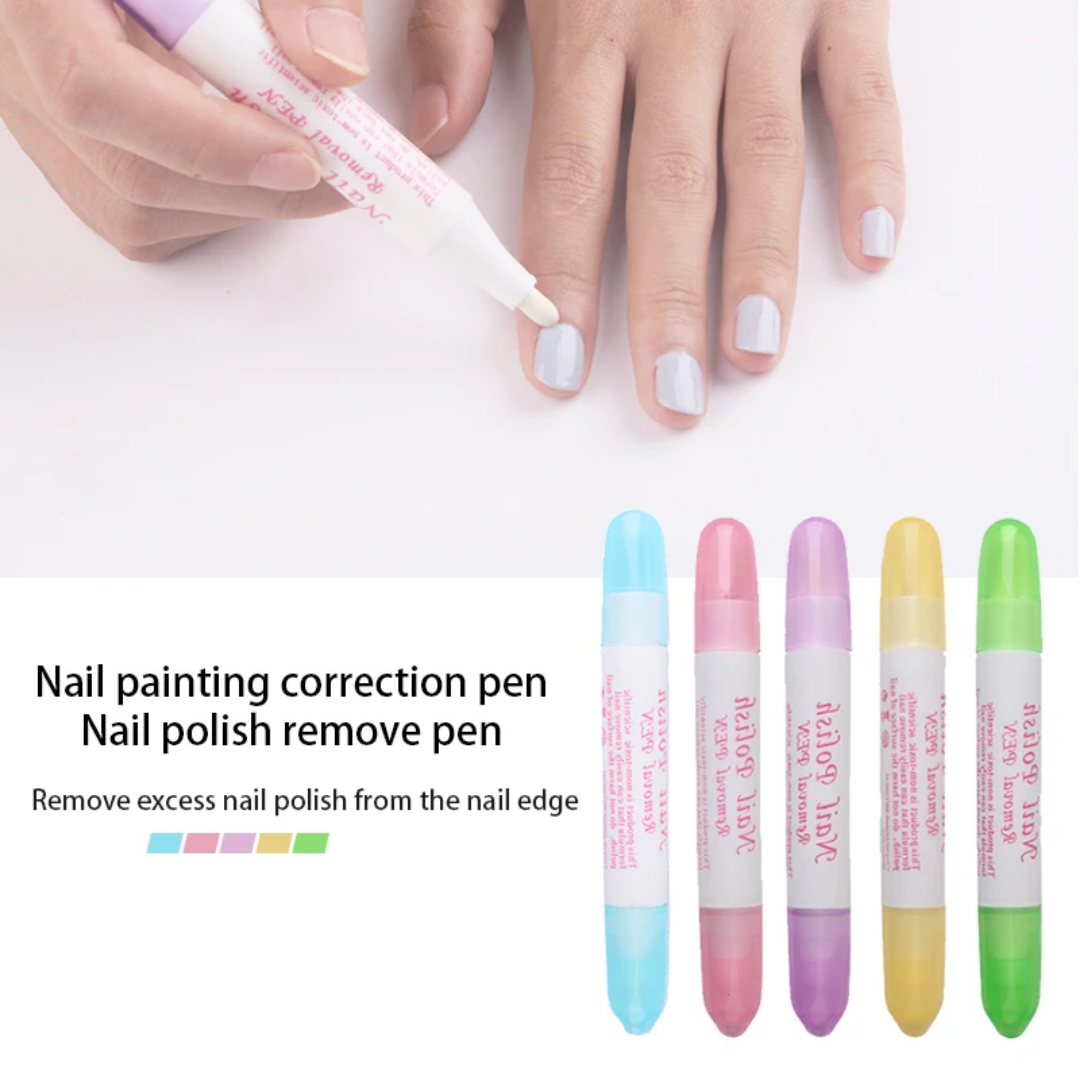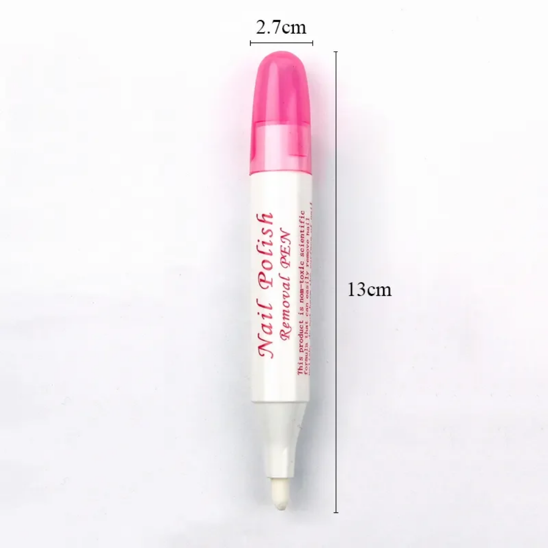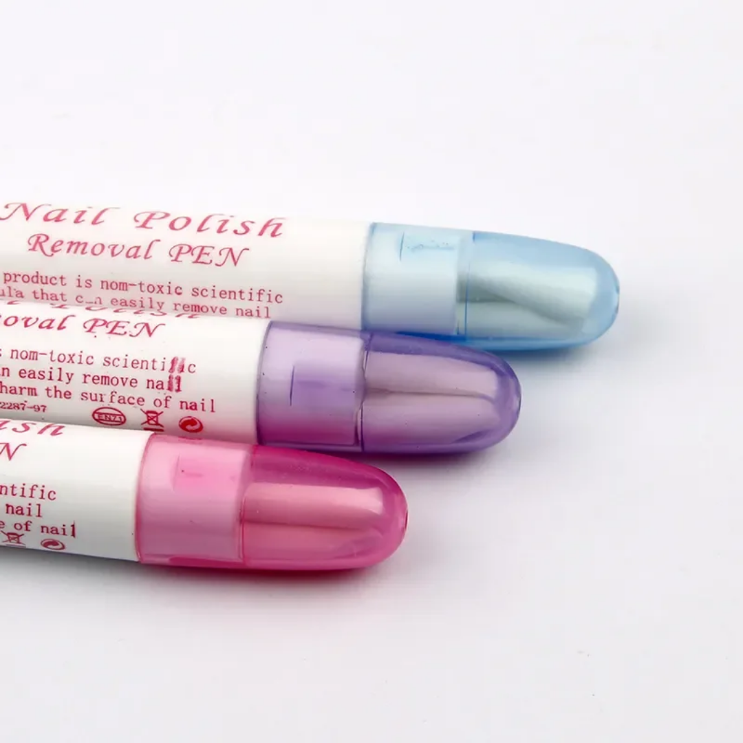 نوک قلم را بهآرامی روی قسمتهای اضافی لاک یا ژل بکشید تا کاملاً تمیز شود. در صورت نیاز میتوان نوک قلم را تعویض یا مجدداً به استون آغشته کرد.