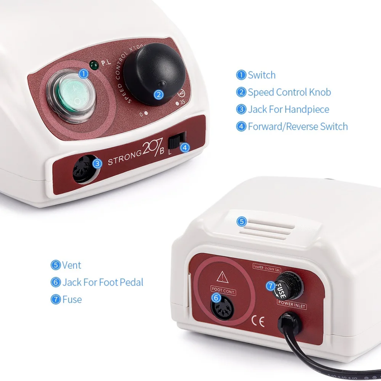 سوهان برقی استرانگ ۲۰۷B اصلی کرهای یکی از حرفهایترین و پرفروشترین دستگاهها در زمینهی کاشت و مانیکور ناخن است که سالهاست انتخاب اول ناخنکاران حرفهای میباشد. این مدل به دلیل کیفیت ساخت بالا، قدرت واقعی و دوام طولانی کاملاً از نمونههای فیک و متفرقه قابل تشخیص است.